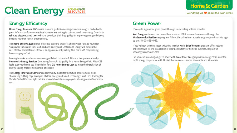 Interior illustrations for the 2014 Chinook Book green coupon books.