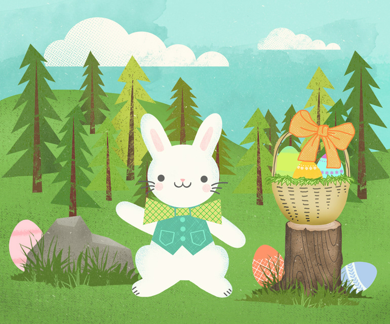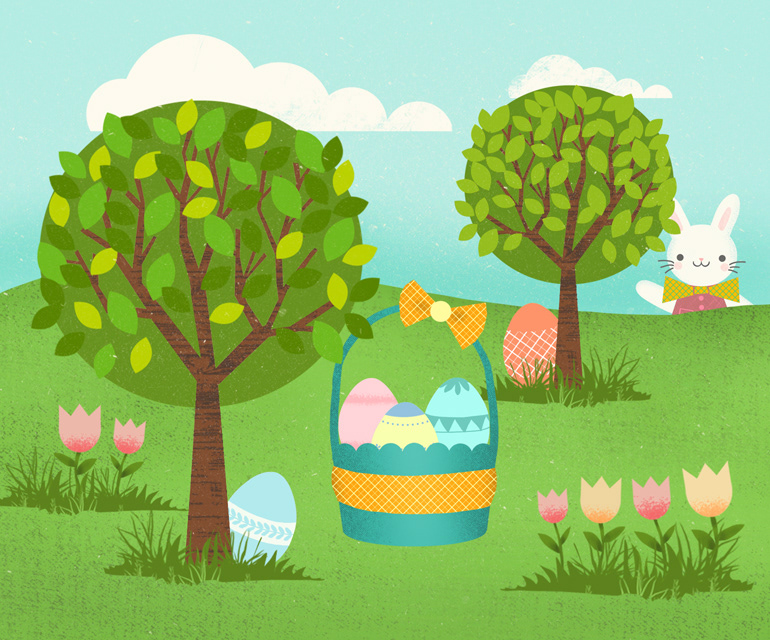 Character design and background illustrations for an Easter themed puzzle app for kids.
