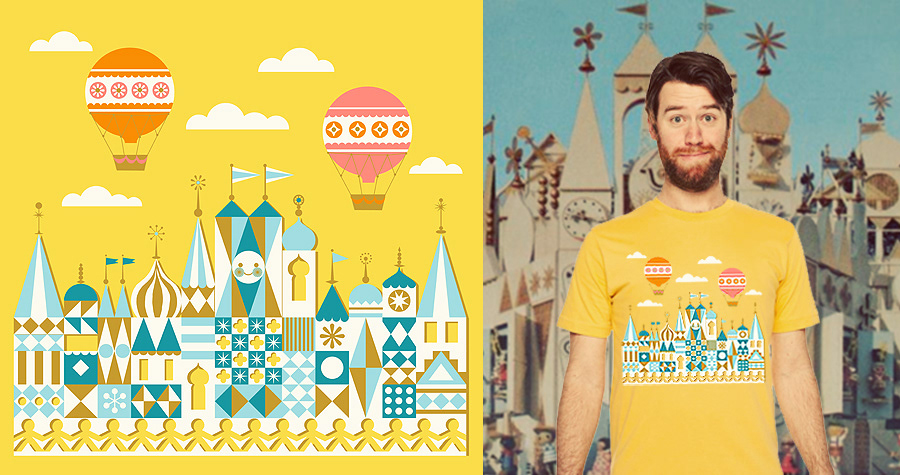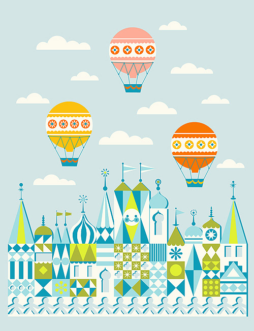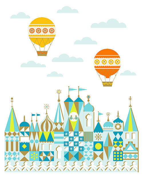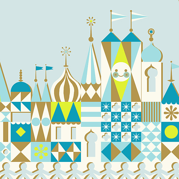 Illustration inspired by the facade of 'It's a Small World' Disney park attraction by Mary Blair.
