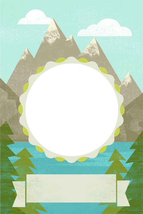 These are illustrated backgrounds and icon design for a photo sharing app. There is a space for the picture to be placed and also a banner for text that the user can insert.